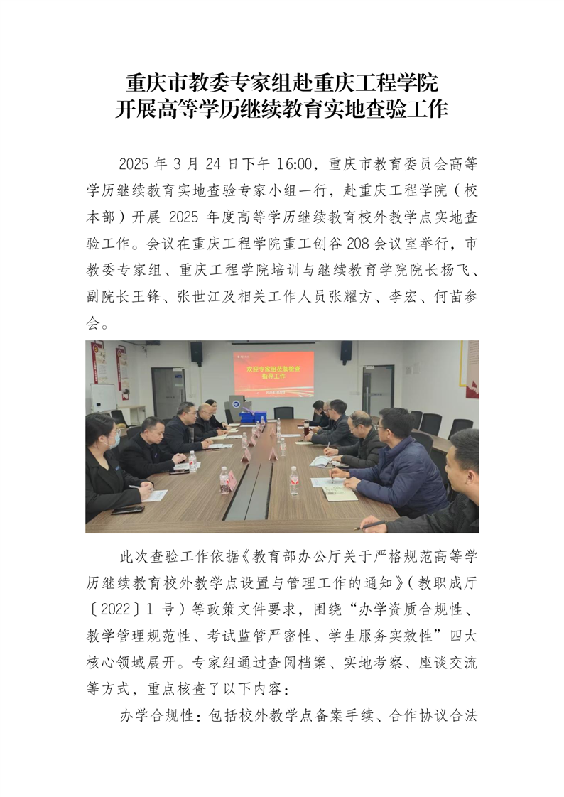 重庆市教委专家组赴英国上市公司官网365开展高等学历继续教育实地查验工作