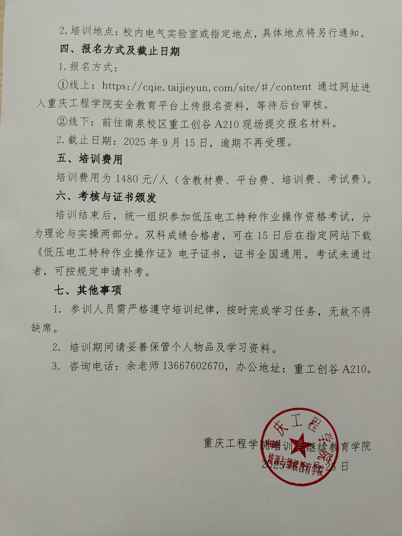 关于组织开展低压电工特种作业培训的通知