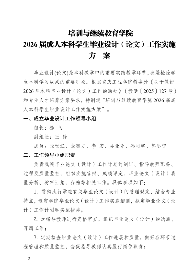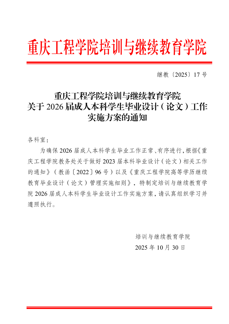 关于2026届成人本科学生毕业设计(论文)工作实施方案的通知