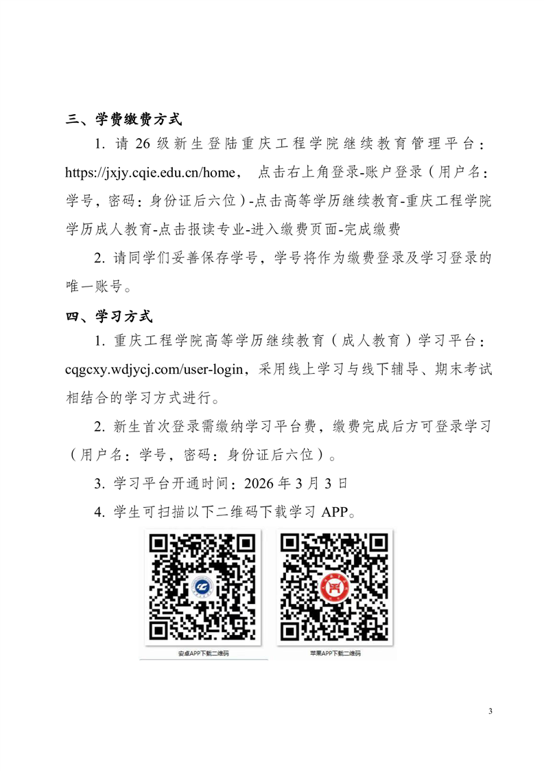高等学历继续教育2026级新生入学通知
