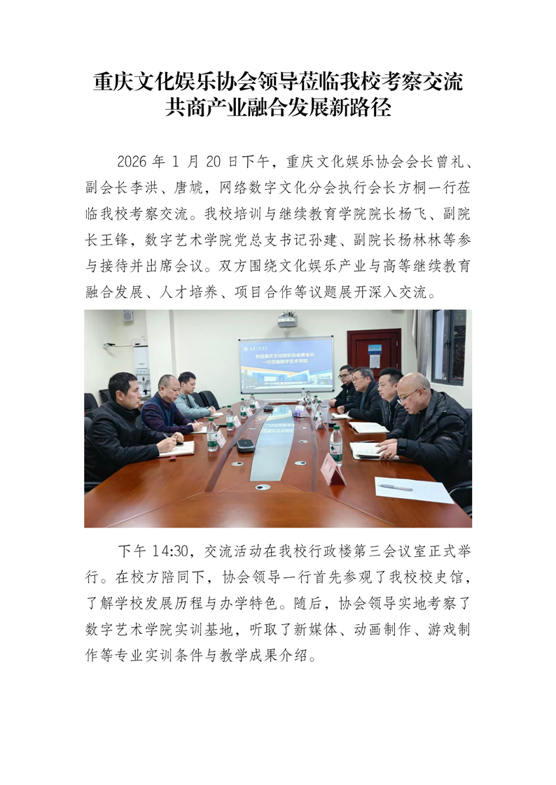 重庆文化娱乐协会领导莅临我校考察交流,共商产业融合发展新路径